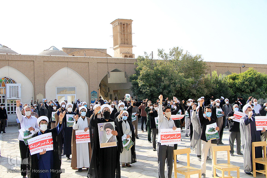 طلاب و شهروندان یزدی با تجمع در مدرسه علمیه مصلی، توهین نشریه «شارلی ابدو» فرانسه به ساحت مقدس پیامبر اسلام (ص) را محکوم کردند.