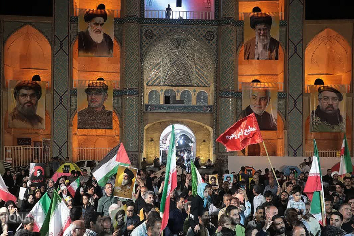 مردم دارالعباده یزد در حمایت از حمله موشکی سپاه پاسداران به مواضع نظامی رژیم صهیونیستی در حسینیه امیرچقماق یزد تجمع کردند.