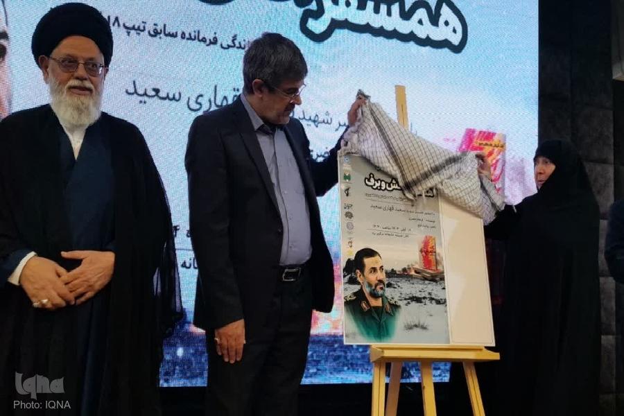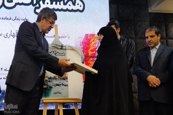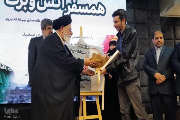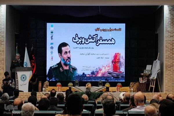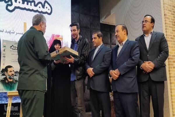 در پایان این مراسم از کتاب همسفر آتش و برف رونمایی شد و از همسر و فرزند شهید قهاری سعید تجلیل بهعمل آمد.